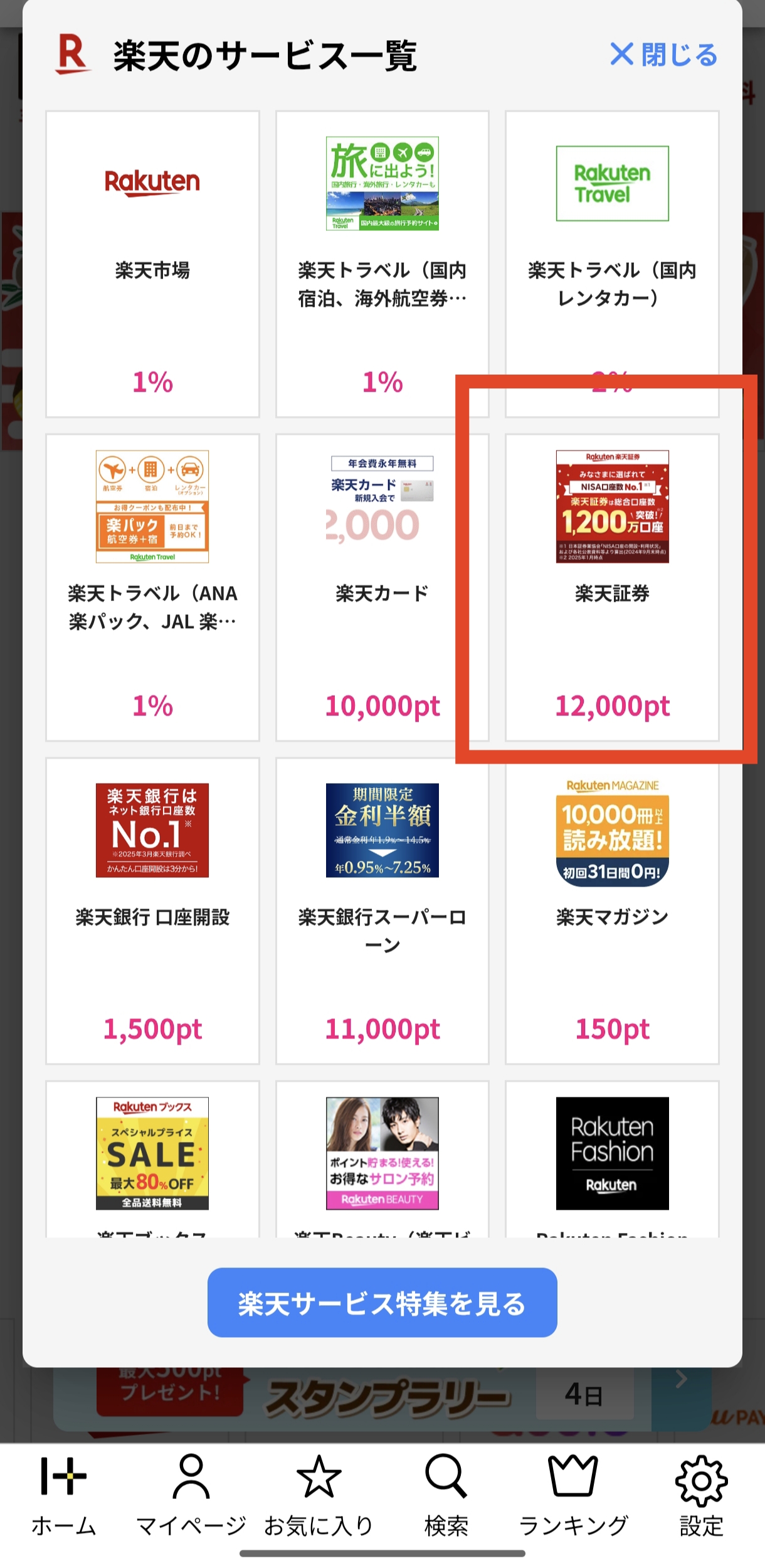 - ハピタスサイトから「楽天証券開設」案件に取り組む